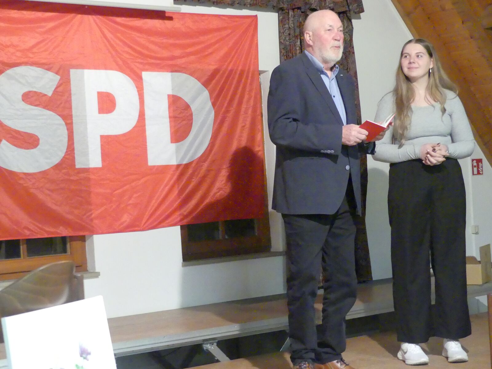 Gerhard Scheck übergibt das Parteibuch an Freya Ansbach